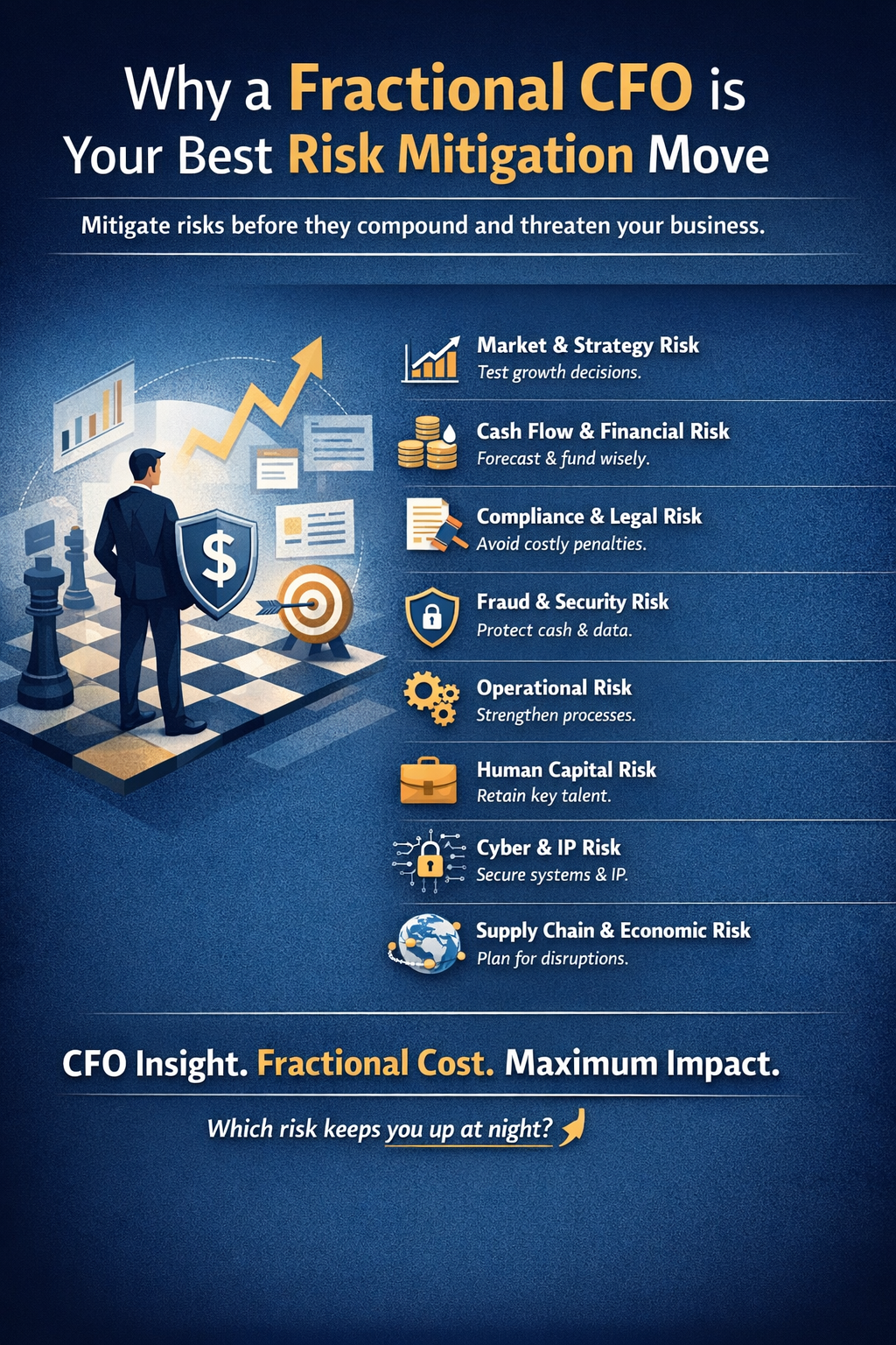 Expert fractional CFO experience working with businesses from startups to $1B+ enterprises.